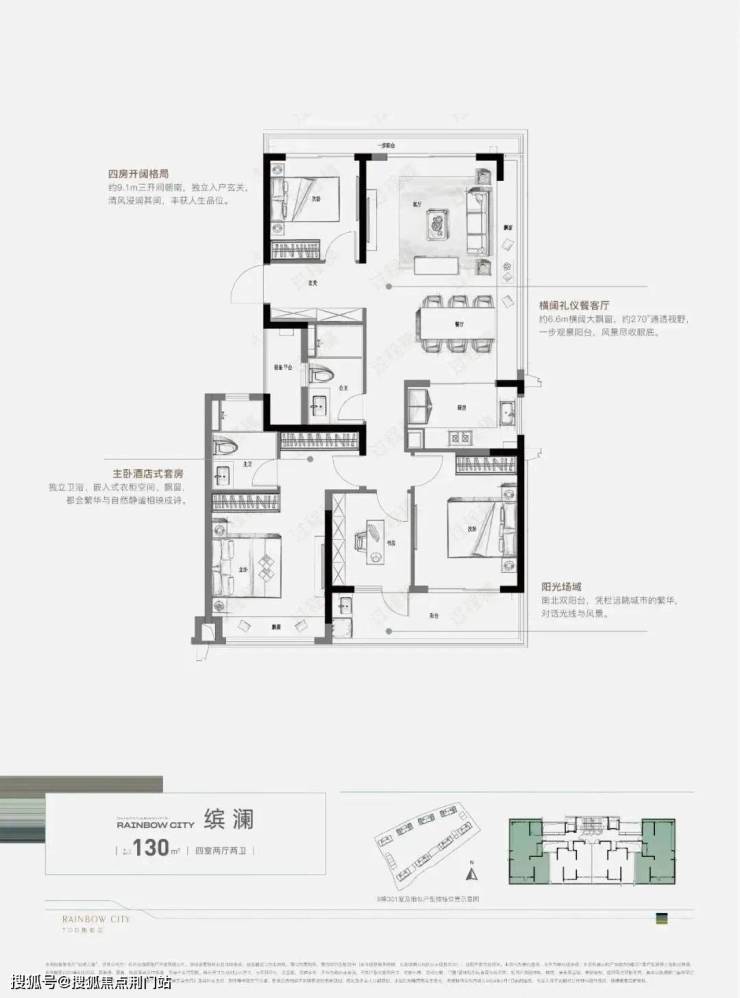 而建面约130㎡户型,在纯边套、约270°环景视野的基础上,餐客厅配以约6.6m横阔大飘窗、一步朗阔阳台,瞰景收心,释放恬淡自在的情绪。约9.1m三开间朝南,约5.6m双联阳台,无限扩展生活意境,园林芳华尽现眼前。一方阳台亦可作为私人天地,一台跑步机或瑜伽垫,即刻打造一个健身房;一副休闲桌椅,亦可感受生活的自如惬意