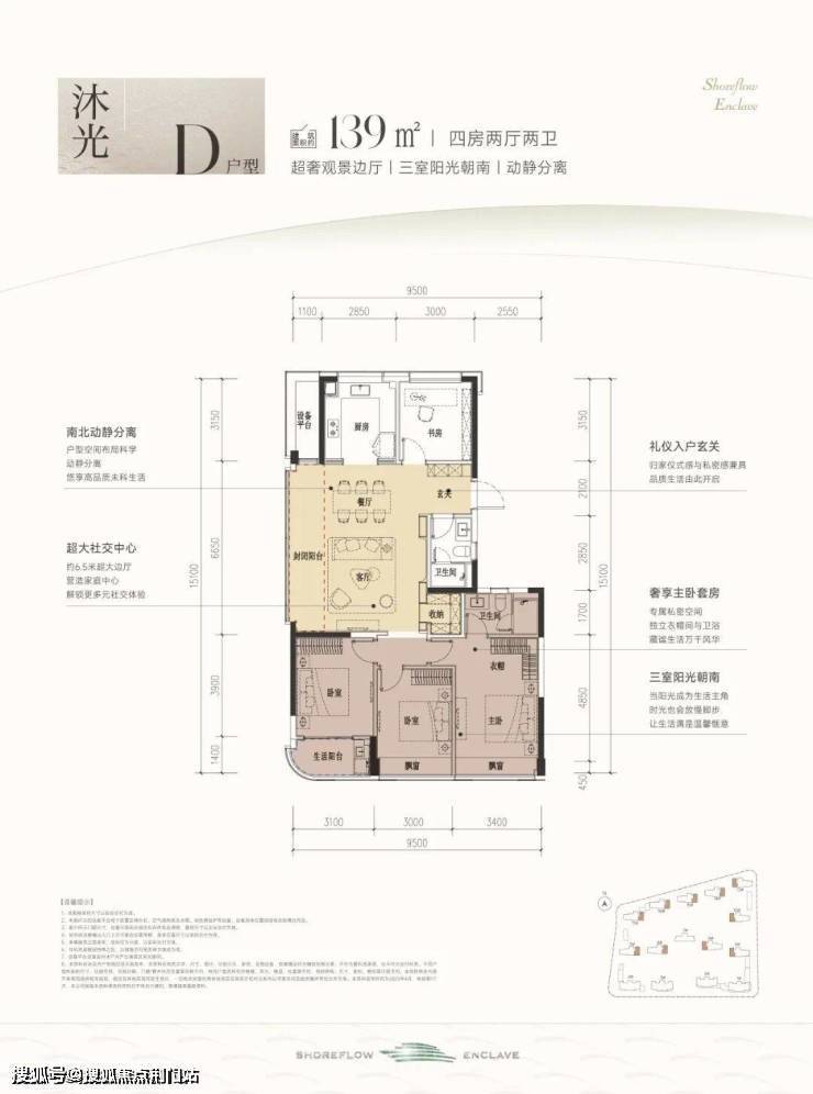 杭州人买房特别在意的“通透感”在时舟里的建面约139㎡E户型得到了充分体现。