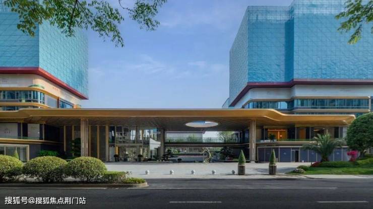 GAD大师张微以“科技+生态”为设计理念,将未来感弧线融入城市肌理:70米宽、9米高的鎏金天幕入口采用偏置大堂设计,顶部圆形镂空让光线穿透,将社区立体花园与城市界面自然衔接,形成“你站在桥上看风景”的互动美学。