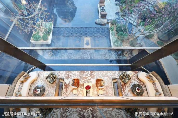 这种极致的仪式感,在约3200㎡的下沉式泛会所中抵达顶点。“九转云梯”贯穿上下,展开一幅立体的“青绿山水长卷”。抬眼望去,是约350年树龄的紫薇老桩、千年的西班牙油橄榄,它们以无声的年轮驻场,拉升着项目的高度。