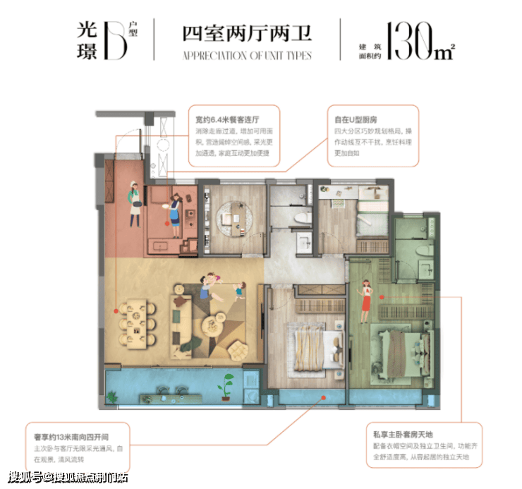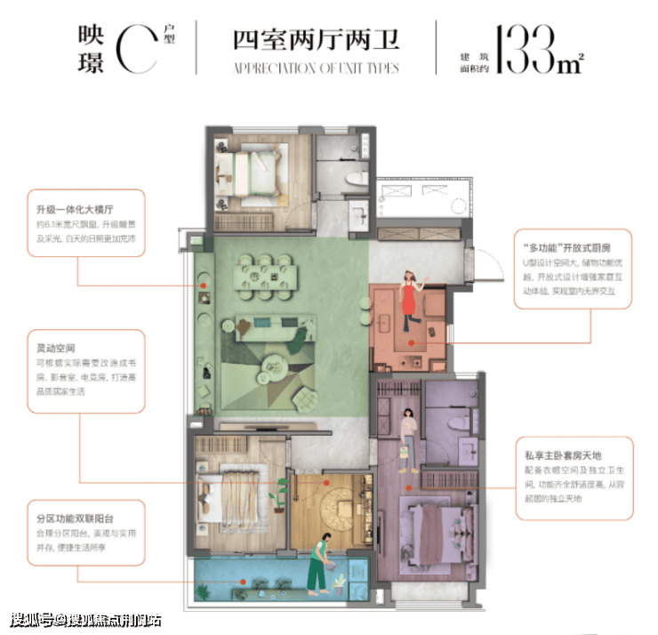 建面约130㎡、133㎡户型则是改善家庭的最爱,均是四房户型。