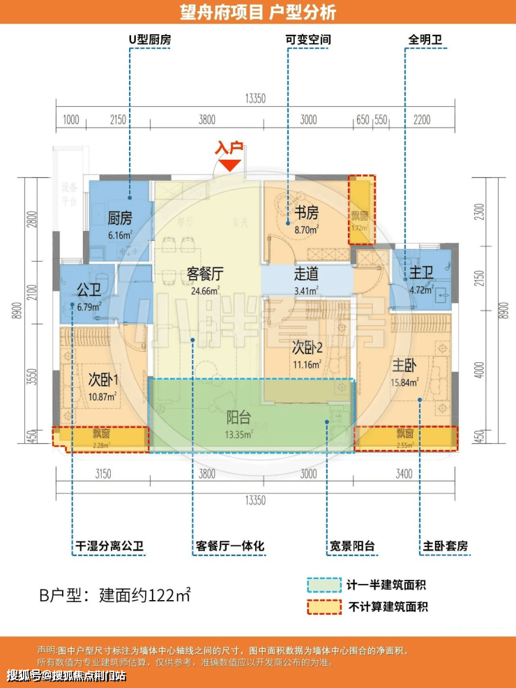 建面约122方户型: