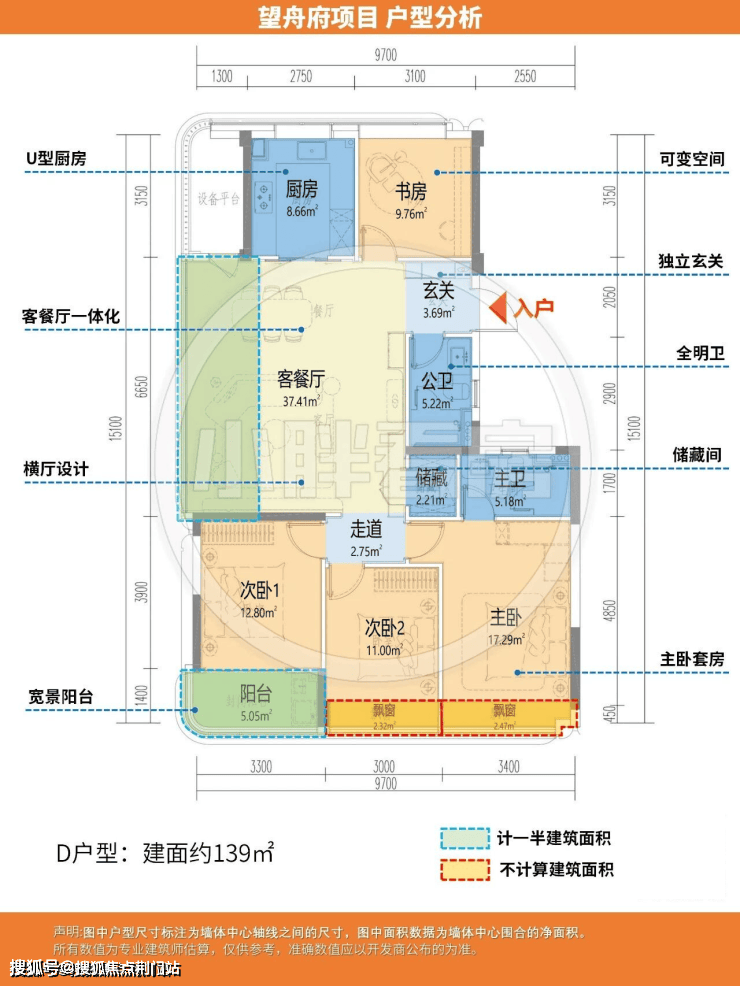 建面约139方户型: