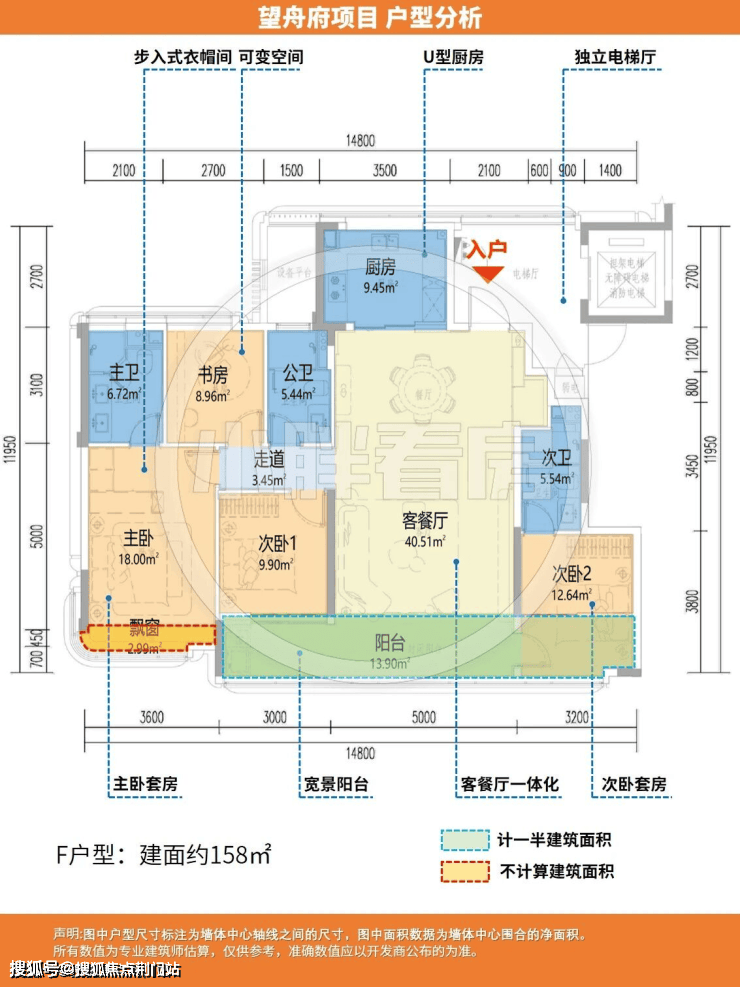 建面约158方户型:
