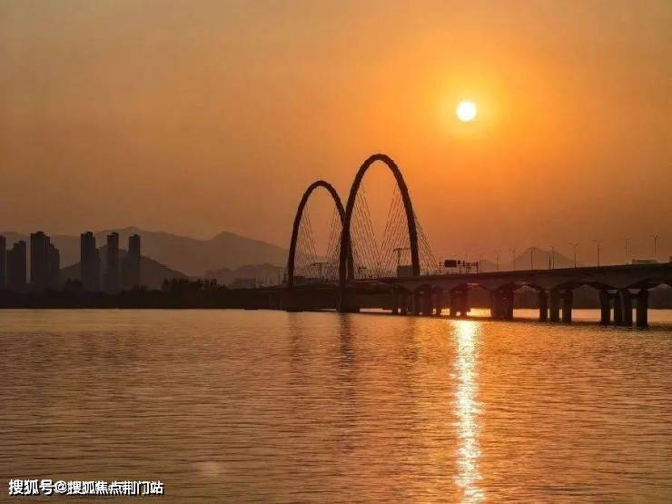 直线距江500米带来的视觉冲击:黄昏时,落日染红晚霞,映红江面。澄江静如练,余霞散成绮。