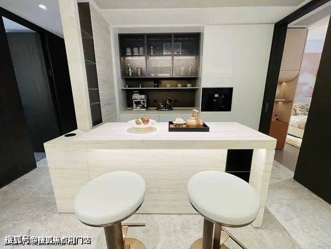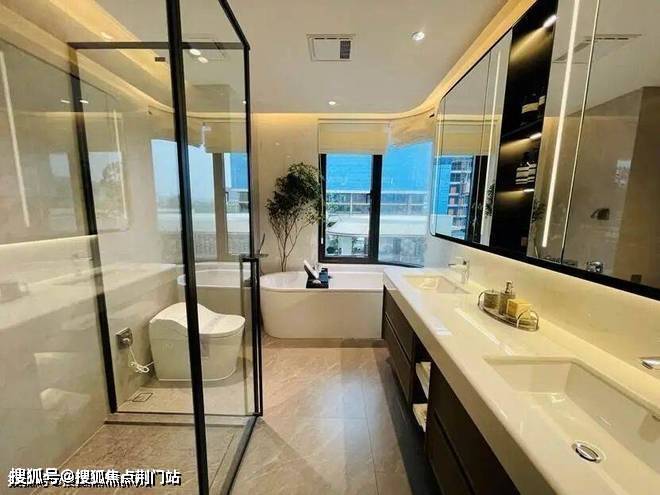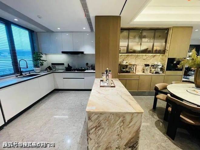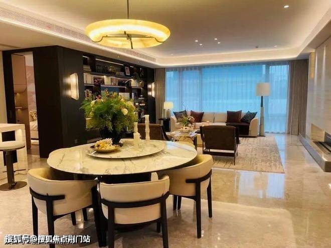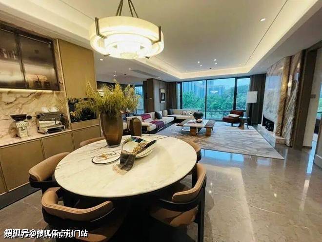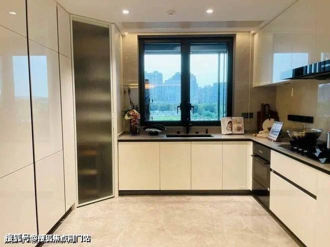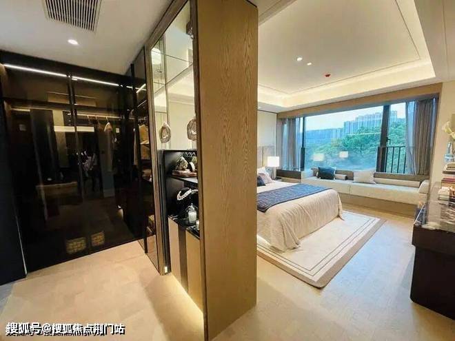 迎的是185㎡,样板房的设计中,餐厨房、书房和客厅几乎都打通,空间十分开阔。主卫采光绝佳,设计了转角圆弧玻璃窗。