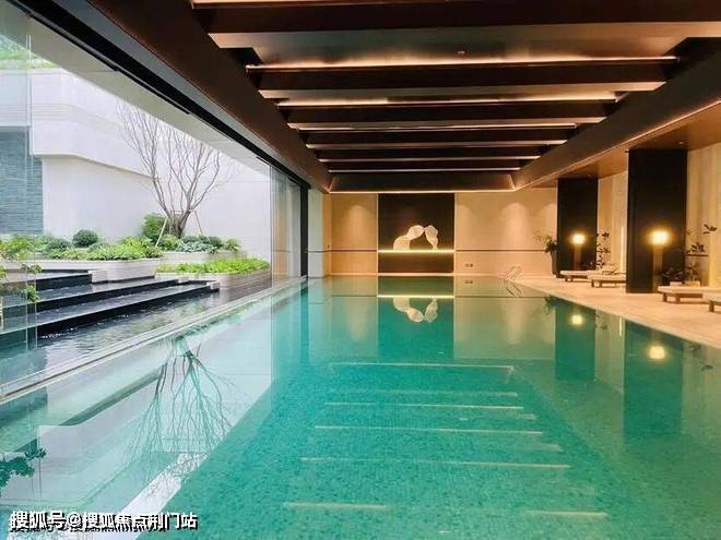 公区比较特别的惊喜是,下沉式庭院与室内无边泳池是相通的,只隔了巨大的玻璃移门,意味着移门打开后,边游泳边可以零距离欣赏中庭景观。