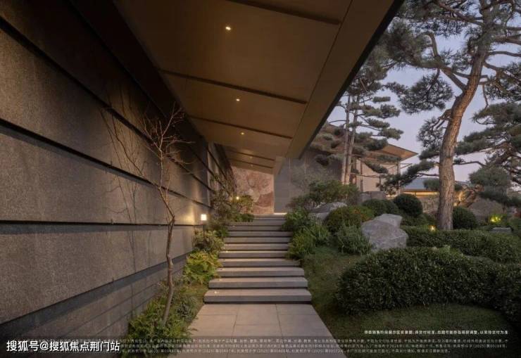 设计凭借天然高差,匠心营造 “五境十二观” 的立体山水行旅。蜿蜒小径引人深入,溪涧、叠石、古松、亭轩随步换景。百年黑松苍劲,原矿老石沉淀时光,潺潺水声映衬空谷幽兰般的宁静。