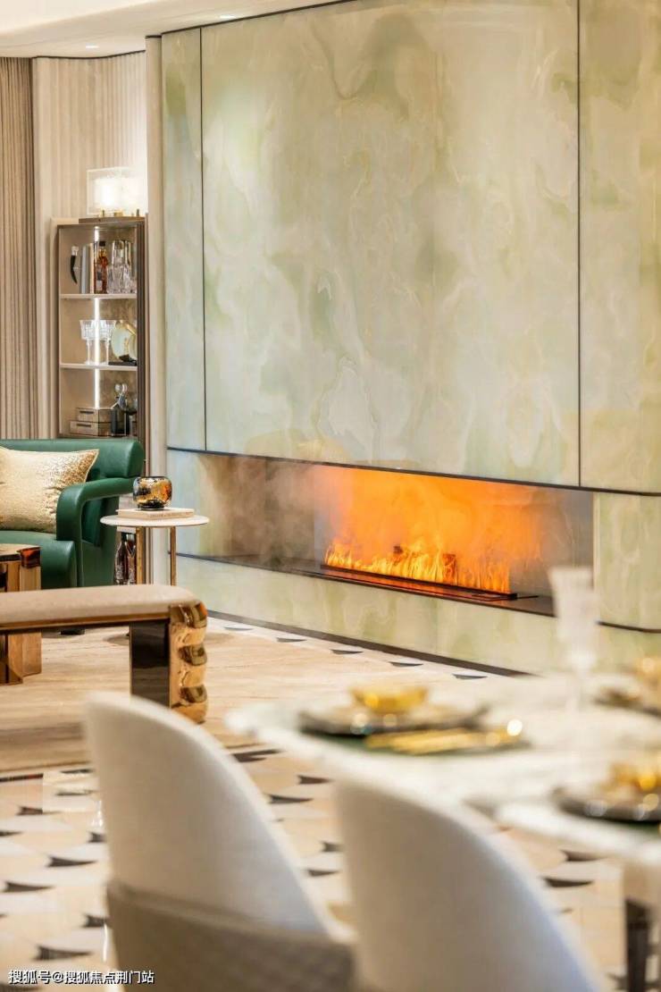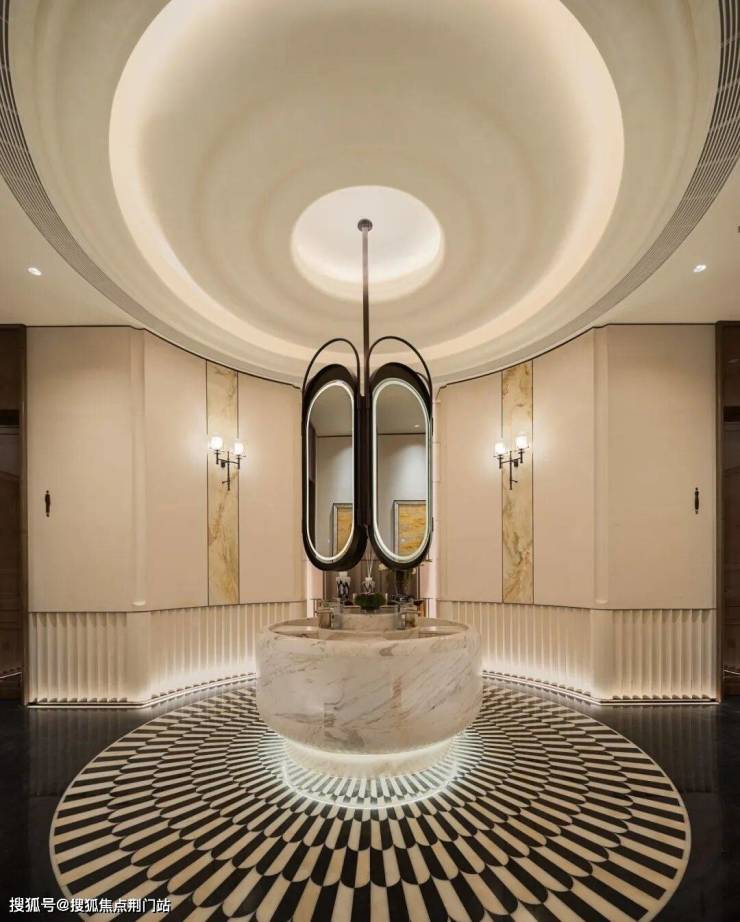 现代艺术与法式复古相结合,大面积的奢石、玉石与拼花工艺,造价高昂。