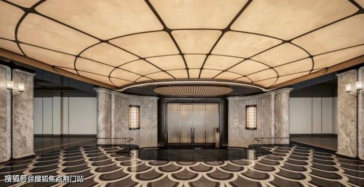 项目大门采用了杭州首个Art Nouveau的新艺术风格,入口横贯约80米,主楼约40米,大门由六扇曲面奢石墙体构成,采用大面积的维多利亚白奢石,端庄典雅、恢弘大气。加之大门顶部设计“金色流苏”装饰、曲线设计,工艺非常考究,当之无愧的城市级封面。