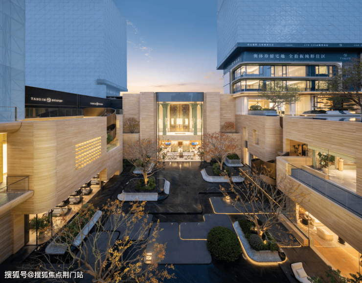 景观由JTL王小波团队执笔,以“城市山林”为理念,融合山石、玉雕与枫林元素,营造“石开玉出”的东方意境。