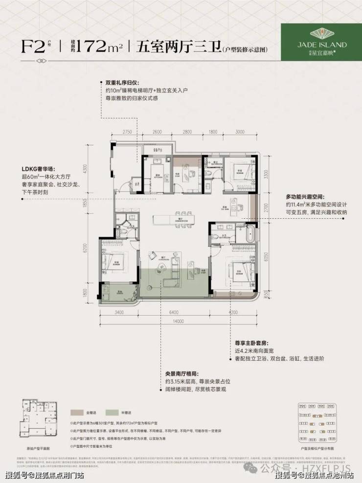 172㎡五室两厅三卫【 近94%改造后使用率】