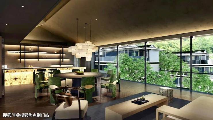 中庭大片的薄水池,甚至还一路从室外漫溢到会所室内,堪称奇观。这是杭州豪宅从未有过的“边界消融美学”。