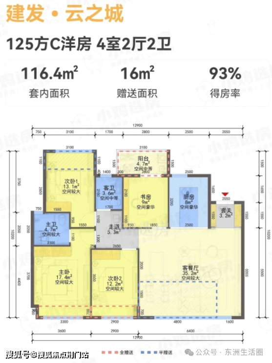 108方样板房:真南北通透、3+1设计(区别市面2+1户型),北侧无消防连廊;入户标配储藏间;四叶草户型布局,各功能空间划分细致,家庭成员生活互不干扰。