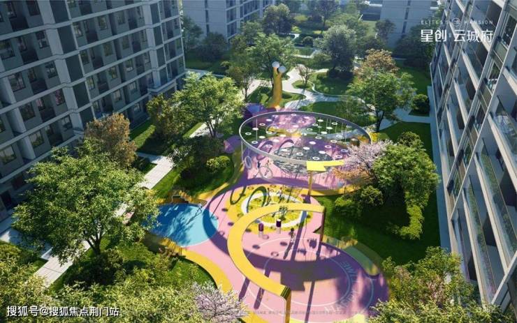 园区健康跑道长度约650米,比普通学校操场的400米跑道还长。仅儿童乐园就有2个,景观中轴带有3条,连缀着大草坪、花园会客厅、樱花廊道。