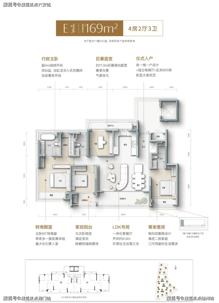 当然有钱就直接上169㎡了,半楼王位置,17.3米的南向面宽,几乎没啥可挑剔的。