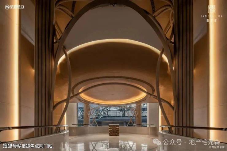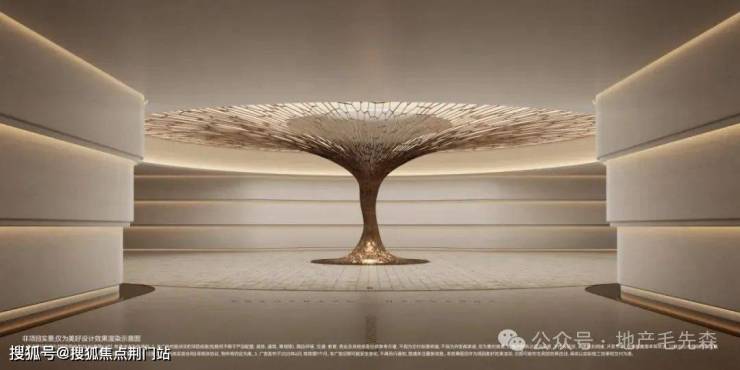 参考台北嘉佩乐酒店的叙事风格呈现第二重门厅。以一座环形的前场庭院作为业主归家的情绪整理空间,打造从繁华到宁静的空间过渡,开启度假般归家体验。