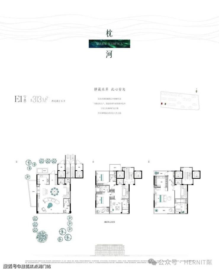 【项目规划】7栋19-22F高层,6栋6+1F叠拼,仅397席【户型配置】建面约186-241㎡奢雅大宅,建面约237-364㎡水岸叠排