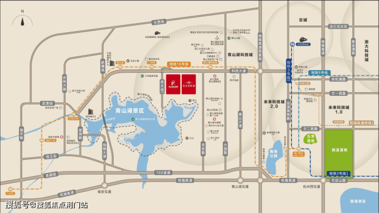 地铁16号线青山湖科技城站,6站抵达未来科技城,通过绿汀路换乘3号、5号线,抵达杭城各处繁华;