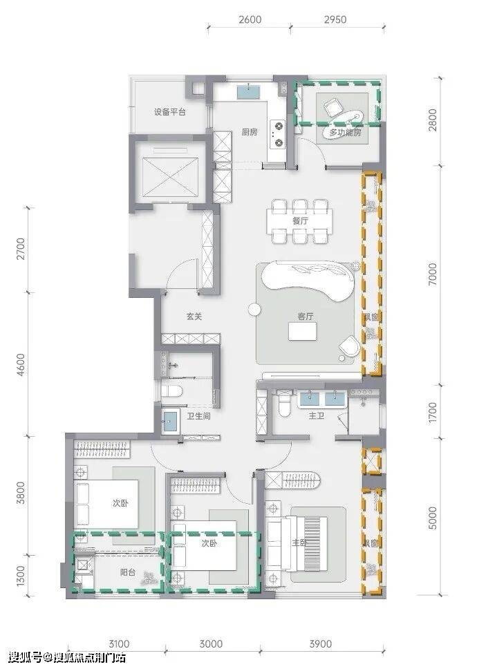 阳台经合规优化,仅按一半面积计算却提供了完整功能。
