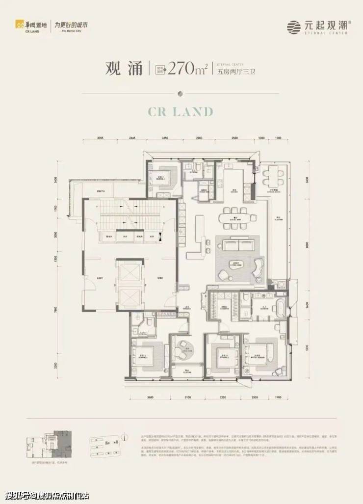 建面约270㎡户型有边厅和南厅两款: