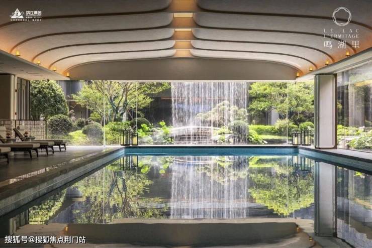 室内,奢材、非遗等豪装同样辉映山水,比如健身房的绿野仙踪造景、室内泳池手工拼接的“湘湖月夜”背景墙、瑜伽室的水波纹立面背景等设计,生活化地内敛了鸣湖里的矜贵。