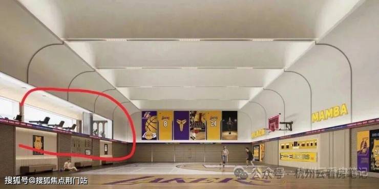 咱们再说回开头提到的篮球场,有一个挺实用的设计:2楼的跑步机正对篮球场。