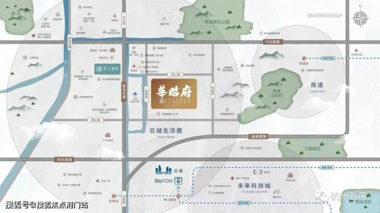 晨园、聚贤社区﹣文化广场、良渚矿坑探险公园、良渚文明探索营地﹣升旗广场