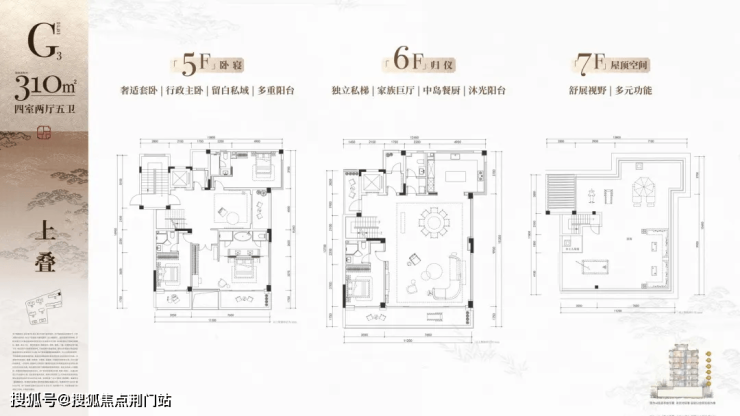 项目主打高端改善配置,社区入口设计有约63米宽、9.1米高的中式大门,并配有名贵罗汉松与水景,归家仪式感强。园林设计借鉴南宋《四景山水图》意境,打造“一轴八境”景观,并设有下沉式庭院。社区内规划有约1500-3000平方米的隐奢会所,配备恒温泳池、健身房、SPA、私宴厅及茶室等设施。