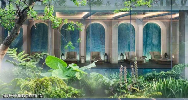 并向上延伸出270°全明电梯厅。14道古典艺术拱廊横向连通会所空间,导引出恒温泳池、健身房、影音室等丰盛生活场景,为之江塔尖人群,构筑起纯粹优质的社交生活领地。