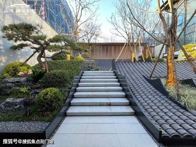 如果你去项目实地看下,一定会被入口界面攥住眼球。迎面而来的就是一大块的琉璃景墙,档次拉满,拾级而上,到处是屋瓦铺陈的漂亮景观,绿植穿插其间,主打一个“归家即度假”的松弛氛围感。
