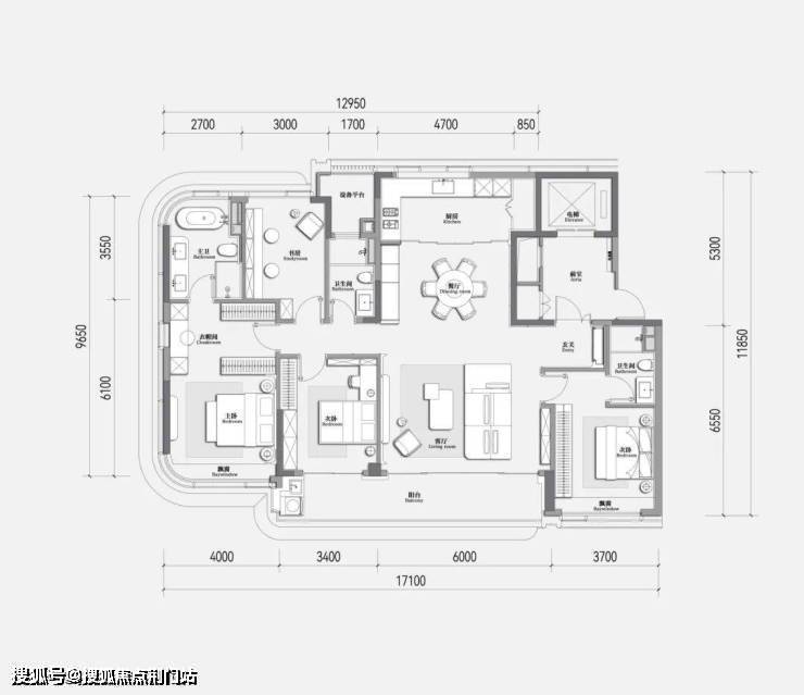 建面约280㎡的户型,是超级受欢迎的玉澜月华288㎡户型的经典回归: