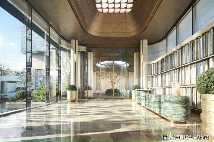 园林景观由蓝颂景观设计院操刀,借西侧钱塘江景引水入园,山景与水景的巧妙交融,形成一幅流动的山水长卷。泳池休闲综合体、活力环绕健身跑道、童话剧场与春知学堂的植入,让“酒店式奢华美学”与“游园之趣”并存。而约7米高的主入口,贝金米黄石材与古铜色金属板的冷暖碰撞,圆形镂空穹顶下的紫薇树,更将“光明与希望”的意境渲染至极致。