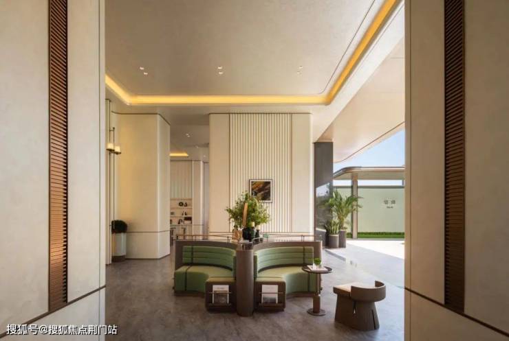 GAD大师张微以“科技+生态”为设计理念,将未来感弧线融入城市肌理:70米宽、9米高的鎏金天幕入口采用偏置大堂设计,顶部圆形镂空让光线穿透,将社区立体花园与城市界面自然衔接,形成“你站在桥上看风景”的互动美学。