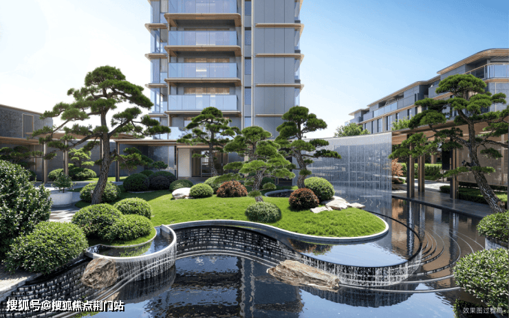 下沉式庭院中,有假山叠石、瀑布水帘,美轮美奂,氤氲着豪宅的府邸气象