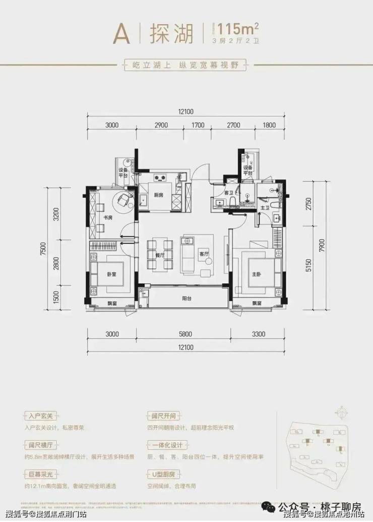 譬如,建面约115方三房两厅两卫,以三开间朝南搭配LDKB一体化阔厅,通过约27方餐客厅与观景阳台无缝串联,尺度彰显气势之外,与公区融合后,衍生出更多社交价值。