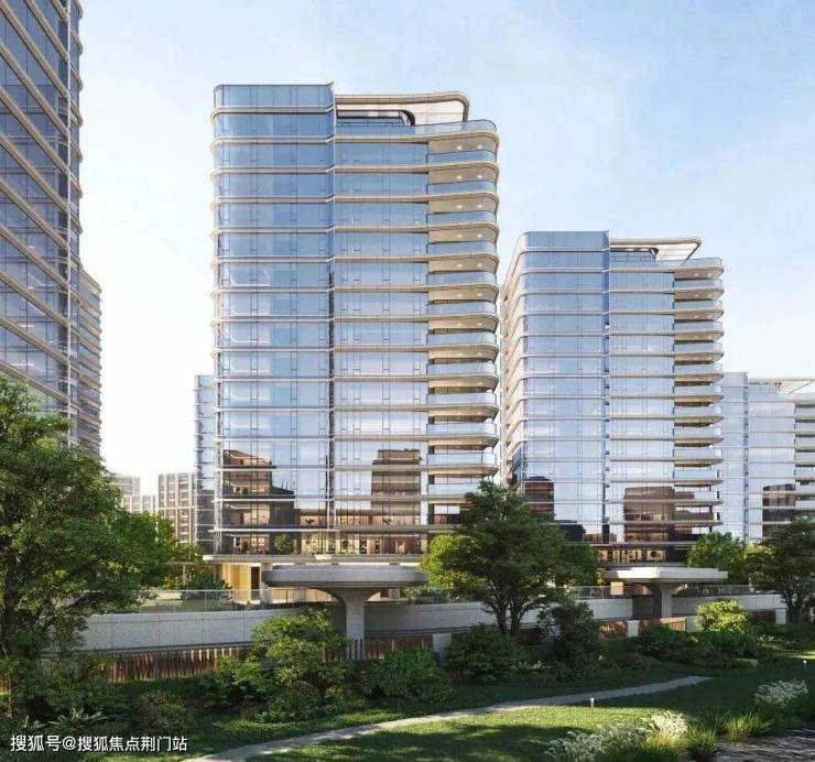 外立面采用弧线转角阳台+蓝灰色钢化LOW-E玻璃,公建化立面拥有超高窗墙比。同时,大量曲线元素的运用,不仅造价昂贵,而且极具辨识度,成为区域的颜值担当。