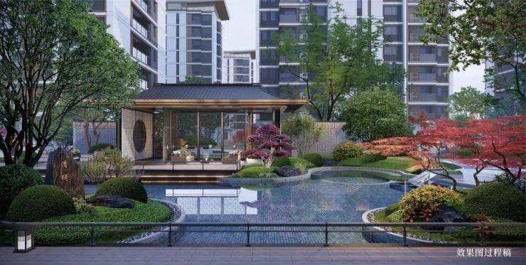 园区配置:地下会所+恒温泳池+室内篮球场+禅境中式风园林景观+唐风大门