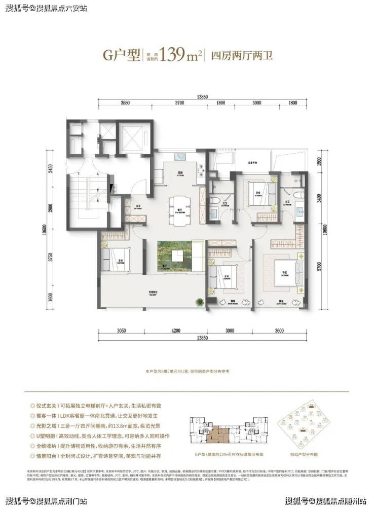 128-139㎡户型强调空间尺度和功能优化,适合品质改善及多孩家庭。128㎡边套四房户型采用边厅设计,空间更大,功能性更强。