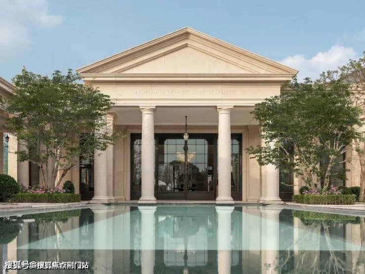 当青翠的山色映照在门前的镜面水池里,当莫奈睡莲画作中的那座桥浮现在大堂的环幕会客厅里,当街上的车水马龙隐现在沿街柱廊里,当这样一座「雅典卫城」矗立在街边,你能感受到绿城又把他们的「庐系」低密产品线推到了一个新高度。