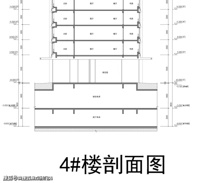 地块规划1幢16F、2幢17F及6幢25F共计9幢住宅,规划1幢22F商业商务楼及配套2F商业裙房。4#住宅地下车库层层高3.6米,地上架空车库层高4.9米,一层架空层层高5.5米,住宅标准层层高3米。外立面玻璃+金色铝板+银色金属线脚。