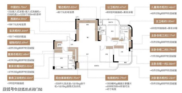 隐形收纳体系:从玄关到卧室的全屋嵌入式收纳,收纳总面积约42m³,让实用功能隐于美学表达之中,确保空间的整洁与奢阔感并存。