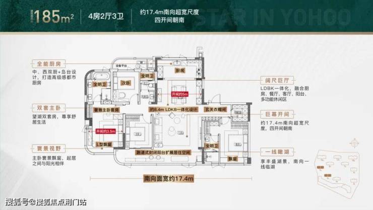 项目根植于玉湖板块独特的“湖+城”基因,185方户型以约17.4米南向瞰湖视野,将玉湖的四季晨昏无缝引入室内,实现“推窗即景、移步换景”的沉浸式居住体验。