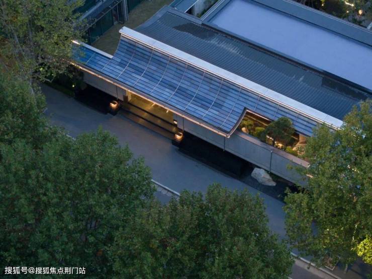 屋脊设计取消了传统的戗角装饰和鸱吻符号,均以现代语言及材料进行表达,屋面曲线减缓了宋代的举折坡度,使得屋面整体显得更为轻薄、现代。