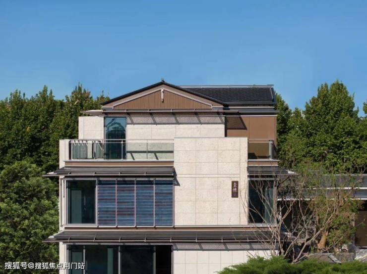 同时,设计舍弃了中式建筑中大量使用的小青瓦铺面,选用现代简约的深灰色陶瓦/金属瓦,保证了建筑整体纯正、精致、轻盈的宋风韵味。