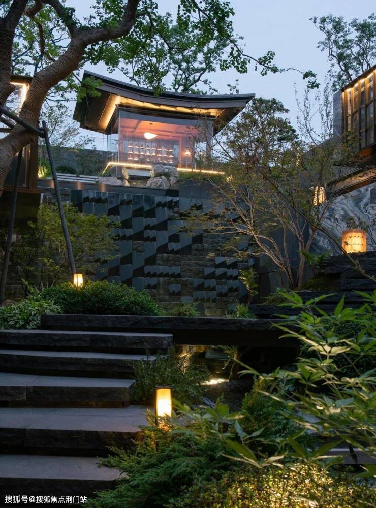 迂回的路径引导视线,营造重峦叠嶂般的层次纵深,增强空间神秘感。多重标高构建复合场景,亦亭亦榭,形成多样化的视觉序列。