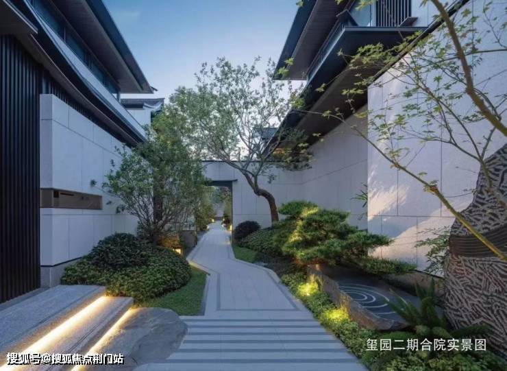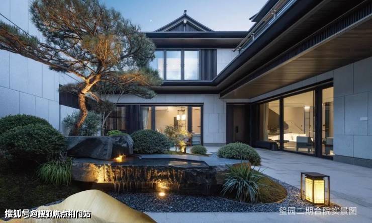 在建筑营造上,由GAD张微老师执笔,延续和家园“章法天成,自然而然”理念,玺园二期合院取法宋代郭熙的“三远论”,结合正脊、戗脊、博风板、悬鱼、鱼鳞瓦等经典中式元素,并巧妙运用石材、玻璃、铝板等材质,诠释中式建筑的虚实相生,平远雅致,带来丰富的视觉体验。
