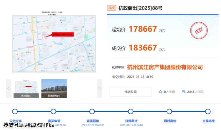 竞得者:杭州滨江房产集团股份有限公司