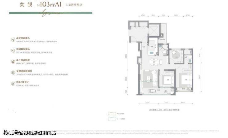 • 类方厅阔境:客厅餐厅厨房一体化设计,营造开阔通透的空间感,提升居住舒适度