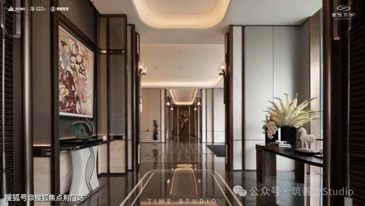 大门还是不错的,延续着卷大门的风格,一个刚需盘能有这样的大门已然相当不错了。萃取东方礼制精髓,沿东西向主轴设置多重归家院落,形成主入口至迎宾水院及度假水池为一体的礼序归家轴。层层递进的空间,在步移景异中,营造出多重归家仪式。